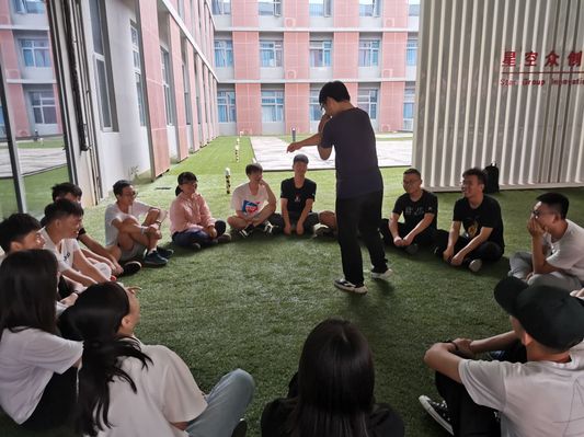 此次培训以趣味游戏的团体形式开展。第一个活动是大风吹,同学们在“大风吹,吹什么”的口令下迅速进行位置互换,换错的同学接受惩罚。同学们积极参与其中,明白了人际交往中沟通与尊重的重要性。第二个活动是解手链,同学们在面对错综复杂的乱网时,没有慌乱,一起想办法解决问题。体现了同学们的团队协作能力。最后一个是同心协力,在这个活动中,同学们组成了一个整体,每个人全力配合完成目标,让同学们明白了团结合作的重要性。这些活动充分调动了同学们的积极性,培养了同学们的合作精神,缓解了同学们的精神压力。