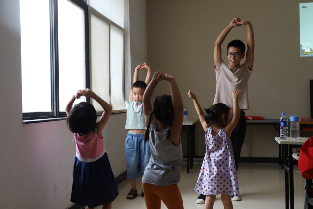 活动中,志愿者将儿童防溺水安全守则转化为有趣的情景剧,邀请小朋友上台表演,使孩子们在互动表演中加深对防溺水安全措施的理解。随后,大家共同观看了儿童防溺水安全教育片《生命只有一次》,小朋友们纷纷举手抢答,指出片中主人公所犯的错误,进一步增强了安全防范意识。接着,志愿者带领小朋友们学习了游泳前准备运动的重要性与游泳前的九个热身动作,告诫他们不可在无家长或教师带领的情况下私自游泳,避免意外的发生。随后,志愿者对防溺水安全知识进行总结,并结合“入水前的热身”“如何安全游泳”“水里手脚麻痹怎么办”“同伴落水怎么办”“河岸边行走时的注意要素”等要点,通过一对一、一对二的形式与孩子们进行情景模拟,帮助孩子们在游戏中消化、掌握防溺水安全措施。最后,志愿者与家长、孩子们共同朗诵了儿童防溺水警句,学习了儿童防溺水儿歌,活动在响亮的儿歌声中圆满结束。