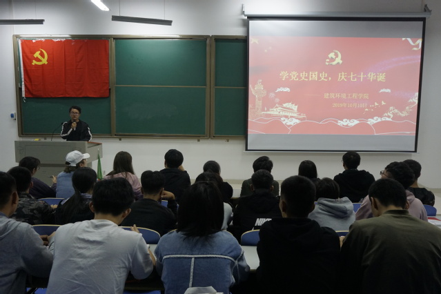 为庆祝新中国成立七十周年,激发广大学生爱党爱国热情,10月10日,建筑环境工程学院于双创楼108开展“学党史国史,庆七十华诞”教育活动。建筑环境工程学院学生党员代表、第62期入党积极分子培训班学员参加此次活动。
