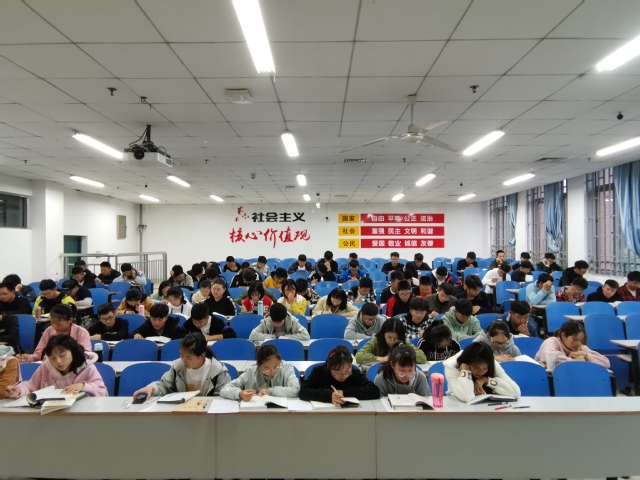 晚上7:30,同学们齐聚双创楼108室进行集中自习。所有同学都埋头苦读、专心致志,教室里只有沙沙的写字声。同学们相互监督,自主学习,梳理一天以来的所学所获,攻克遗留问题,认真完成作业,教室里笼罩着浓厚的学习氛围。窗外夜色深了,屋内的灯光显得更加明亮,明亮的灯光照耀着自习室,照亮每一位建工学院学子前行的道路。