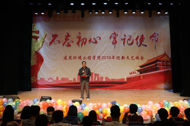 晚会开始前,建筑环境工程学院党总支书记刘吉彬致辞,刘书记代表学院全体师生向2019级新生的到来表示热烈欢迎,学院举办“不忘初心、牢记使命”为主题的迎新晚会,既是弘扬爱国主义精神的“深刻一课”,也是落实立德树人的根本任务、培育堪当民族复兴大任时代新人的宝贵契机。希望每位同学都能在未来的四年大学生活里有所收获,找到自己的人生梦想,不忘初心、牢记使命。