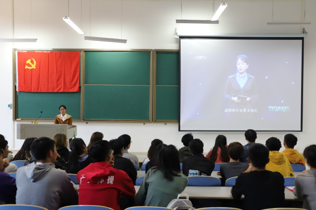 活动中,同学们共同学习了中共中央、国务院印发的《新时代公民道德建设实施纲要》,了解了加强公民道德建设的总体要求和重点任务。随后,主持人联系大学生具体生活实际,阐述了深化道德教育引导、推动道德实践养成的具体做法,为同学们点明了加强思想道德建设的方向。接着,主持人以网络空间道德建设为重点,通过视频《网络道德从“心”开始》号召广大同学培养文明自律网络行为、丰富网上道德实践、营造良好的网络道德环境。同学们纷纷表示,要讲道德、尊道德、守道德,以个人道德素养的提高为形成更好的社会道德风貌贡献力量。