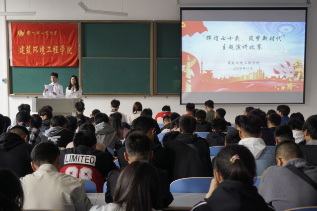 风雨砥砺,岁月如歌。为庆祝新中国七十华诞,弘扬社会主义核心价值观,提高学生谈吐素养,繁荣校园文化,11月3日下午,建筑环境工程学院在双创楼108室成功举办“辉煌七十载,筑梦新时代”主题演讲比赛。学院各班级学生代表共150余人参加此次活动。
