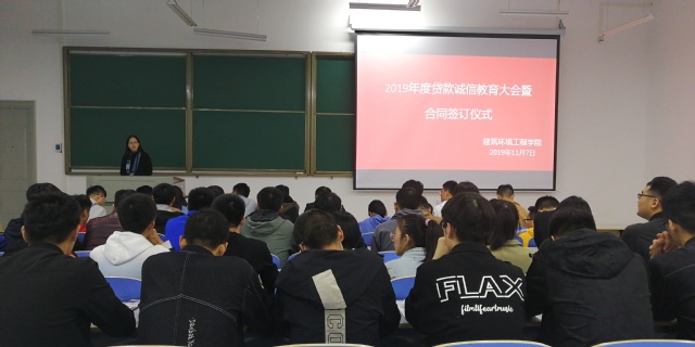 为帮助贷款学生进一步了解国家助学贷款相关政策,做好助学贷款工作,树立贷款诚信意识,建筑环境工程学院于11月8日在工程楼108室举办2019年度贷款诚信教育大会暨合同签订仪式。我院负责学生资助工作的陈思萌老师及申请校园地贷款的同学参加了此次大会。