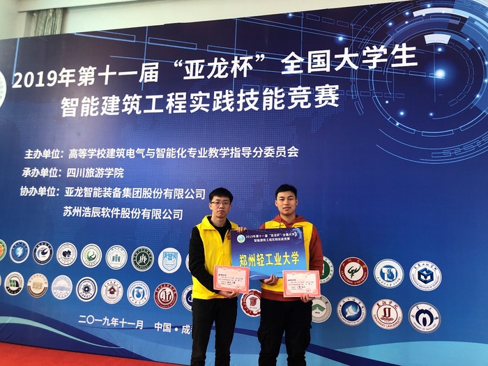 11月2日—3日,第十一届“亚龙杯”全国大学生智能建筑工程实践技能竞赛在四川成都成功举办。我校建筑环境工程学院任静、刘玉雪两位老师指导,建筑电气与智能化专业2016级学生闫擎、杨洁组成的代表队参赛并荣获二等奖。