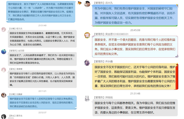 在全民国家安全教育日到来之际,建筑环境工程学院通过团日活动、线上主题研讨、网络平台宣传教育等方式推动国家安全教育工作深入开展,引导学生将总体国家安全观贯穿抗疫全过程,进一步提高国家安全意识,增强国家安全责任感、使命感和荣誉感,履行应对突发公共事件的职责义务,构筑起维护国家安全的钢铁长城。