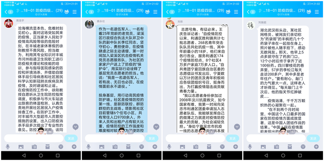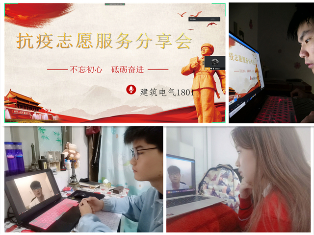 活动中,各班级的疫情防控志愿者们来到线上,生动讲述了自己参与志愿服务的故事与感悟,为班级同学树立了良好榜样。建筑电气与智能化18-02班的余双全是一名退伍军人,他与战友挨家挨户向全村200多户村民宣传这次疫情的严重性和防控措施,在村口防疫卡点值勤长达一个月,始终坚守在抗“疫”行动第一线;建筑电气与智能化18-01班的郭金铭主动协助小区物业工作人员对进出居民进行信息登记和体温测量,并对小区所有单元楼进行喷雾消毒,守护一方百姓平安的安全与健康。建筑环境与能源应用工程18-01班的王向攀加入了濮阳市南乐县张果屯镇疫情防控青年突击队,积极协助疫情防控工作人员详细盘查、登记过往车辆、人员的出发地和目的地,对过往人员进行体温测量并普及防疫知识,并对车辆进行全方位无死角消毒。安全工程18-01班在线上分享全民战疫中的动人故事,激励同学们把对志愿者的敬仰和感动转化为勤学上进、精忠报国的实际行动。