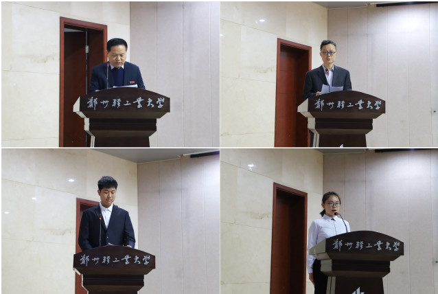 教师代表王宏老师结合自身经历对新生提出希望和要求,一是要志存高远,逐梦前行;二是要勤于读书,善于学习;三是要懂得做人,学会做事;四是要学会感恩,努力前行。随后,老生代表和新生代表分别发言,交流大学生活感想和经验。2018级建筑电气与智能化专业郭金铭同学分享了大学的学习生活体会,鼓励学弟学妹们勤奋学习、直面挑战,青春无畏、勇敢尝试,不忘初心、砥砺前行,积极参与校园文化活动、全面提高自身综合素质,在今后的学习生活中播种希望,收获美好未来。2020级建筑环境与能源应用工程专业李冰淇同学代表新生对领导老师和学长学姐们的关心帮助表示感谢,并庄严承诺要夯实专业能基础、积极投身实践、提高综合素质,以饱满的精神面貌迎接大学生活。
