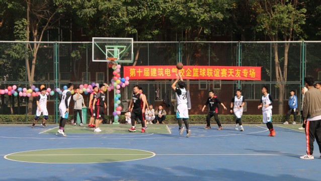 比赛分为四个专场,建筑电气与智能化系大一至大四各年级学生组成的三支代表队、校友会建筑电气校友分会代表队分别与来自郑州市天友建筑设计有限公司代表一队、代表二队,黄河勘测规划设计研究院有限公司代表队以及罗格朗低压电器(无锡)有限公司郑州办事处代表队组成的四支参赛队展开了激烈对决,中场还穿插进行了啦啦操表演、带球过障碍投篮等趣味活动,显示了和谐融洽的校企关系。