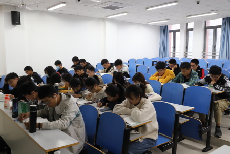 晚上7:30,同学们齐聚双创楼108室进行集中自习。大家埋头苦读、专心致志,教室里只有沙沙的写字声。同学们相互监督,自主学习,梳理一天以来的所学所获,攻克遗留问题,认真完成作业,教室里笼罩着浓厚的学习氛围。屋外深深的夜色和屋内明亮的灯光相融合,不禁令人感慨这一幕安静和谐的学习画面。