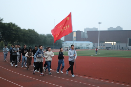 在太阳还未完全升起的清晨6:30,同学们已经在体育场集合完毕,准备进行早操。在学生干部的带领下,伴随着响亮的口号声,同学们迈着坚定整齐的步伐在操场上奔跑运动,队伍中洋溢着青春的活力与激情。