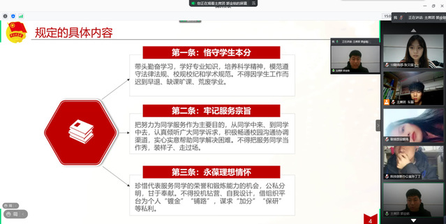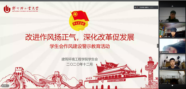 为持续深化学生会工作人员服务意识,进一步加强学生会作风建设,塑造清新组织形象,12月5日晚,建筑环境工程学院在科学校区及禹州实习实训基地开展“改进作风扬正气,深化改革促发展”学生会作风建设线上警示教育活动。学院团委书记寇誉元及全体学生会成员参加此次会议。
