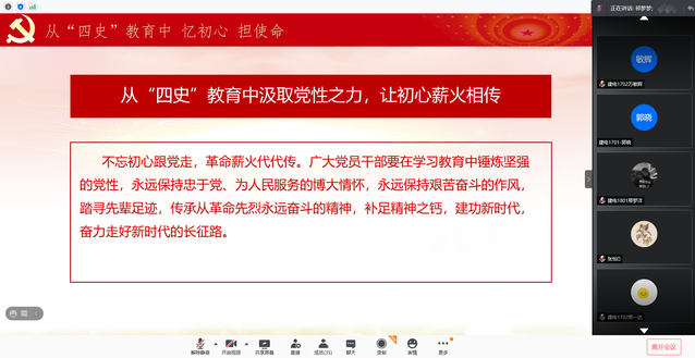为贯彻习近平总书记关于学习“四史”的重要讲话和指示精神,进一步巩固“不忘初心,牢记使命”的教育成果。12月31日,建筑环境工程学院学生党支部开展“学‘四史’‧忆初心‧担使命”线上主题教育活动。