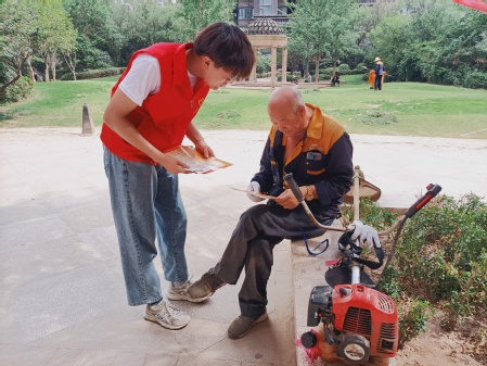 “大爷您好,这是一份消防安全宣传册,上面有许多日常的注意事项和一些火灾扑救知识,您可以带回去和家人一起看一下”“阿姨,外出时要记得关燃气、关电源”“消防通道要保持畅通,不能随意堆放杂物......”在社区里,志愿者穿梭在各个角落,为居民发放安全防火常识宣传册等宣传资料,热情地为来往居民普及消防知识,结合社区火灾规律和特点,向社区居民讲解了常见的家庭火灾隐患问题及家庭防火“三清三关三灭”等内容,并通过开展消防问卷调查活动了解居民们的消防常识掌握情况。同时,志愿者们发挥专业特长,协助社区管理人员开展安全排查,认真检查消防设施配备及社区用电安全情况,细致地为居民讲解电动车违规充电、停放的危险性,提醒居民夏季容易发生火灾,要注意用火、用电、用气安全,定期检查家里的电器线路,避免事故发生,志愿者们耐心热情的态度赢得了社区居民的一致好评。