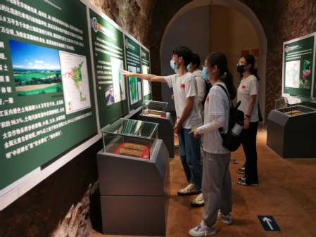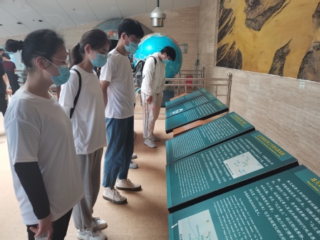 上午九点半,实践队员们带着对黄河文化的无限热情穿过炎黄广场直达郑州黄河国家地质博物馆。在博物馆里的文化长廊下,在习近平总书记视察黄河留念照片旁,队员们认识了黄河生态治理的成果,学习了黄河综合治理的保护措施,了解其从泛滥成灾到发展成为旅游胜地的艰难历程。古代治理黄河也有一定的体系,队员们追随先人的足迹,了解了大禹治水的历程,学习和探索了黄河地历史变迁,深刻体会了黄河治理的艰苦奋斗精神。