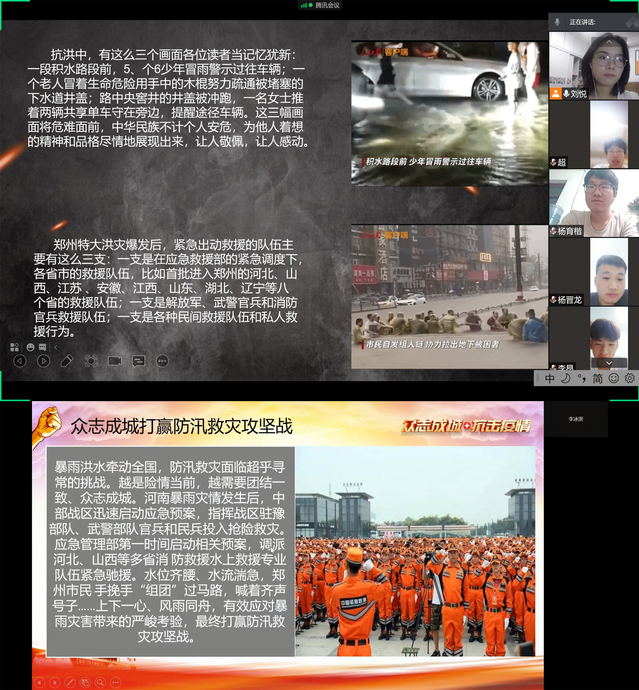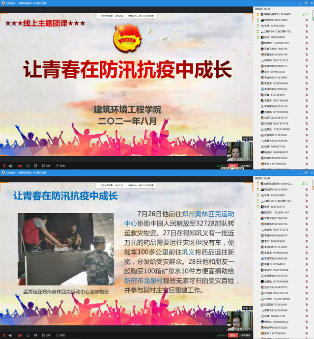 为引导广大团员青年把灾难当教材、与祖国共成长,打赢疫情防控阻击战和灾后救援重建攻坚战,8月25日至9月8日,建筑环境工程学院各班级团支部组织开展“让青春在防汛抗疫中成长”主题团课。