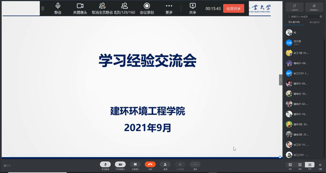 9月11日下午,建筑环境工程学院举办学习经验交流会,本次会议旨在搭建老生对新生进行指导、交流学习经验的平台,为新生解决在学习、生活、人际交往等各个方面受到的困扰,让他们尽快完成从高中到大学的角色转变。会上,2018级学生优秀代表郭金铭、王一博、向春杰、段文轩和蔡永壮进行发言,他们分别从新生的角色转变、抓专业、重实践、阔视野、宽思维等方面介绍自己大学学习生活期间的经验与所得。接着,2021级新生辅导员范文楚提出新生一定要有坚定的目标以及矢志不渝的信念,勤思考,重修养。此次交流会不仅让广大同学在交流过程中吸取了很多有益的方法和经验,也使其对大学生活和学习有了更加深刻全面的认识,对今后提高自身学习水平和质量有很大帮助。
