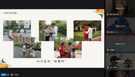 大会中,优秀项目代表依次发言,借助PPT、视频等方式,从活动主题、开展过程、实践成效、媒体宣传等方面向老师和同学展示实践的丰硕成果,分享了自身的感悟及体会。“筑心”消防安全宣传志愿服务队走入社区开展安全讲座、知识宣传、隐患排查、问卷调查等活动,为社区居民普及消防安全知识;“鼓乐筑心”志愿服务队采用音乐团辅和巧手制作的活动形式培养小朋友们的兴趣爱好,促进青少年心灵更加健康快乐地成长;“传承百年薪火,点亮红色青春”党史学习实践队和“不忘初心使命,传承百年辉煌”党史学习小分队通过党史宣讲、党魂寻访、党迹探访的活动方式开展青春寻访,重温红色历史,传承红色基因,弘扬红色精神;“记录黄河发展变迁,探索流域生态保护”河小青生态环保调研小分队以实地勘察的方式,了解黄河发展变迁历史,探索黄河流域生态保护。最后,寇誉元老师对此次活动做出总结,她对同学们在实践活动中取得的成绩给予充分肯定,希望全体新生可以充分认识到暑期社会实践的重要意义,积极投身社会实践活动,在实践中受教育、得锻炼、长才干、作贡献,用青春实践向伟大祖国告白。