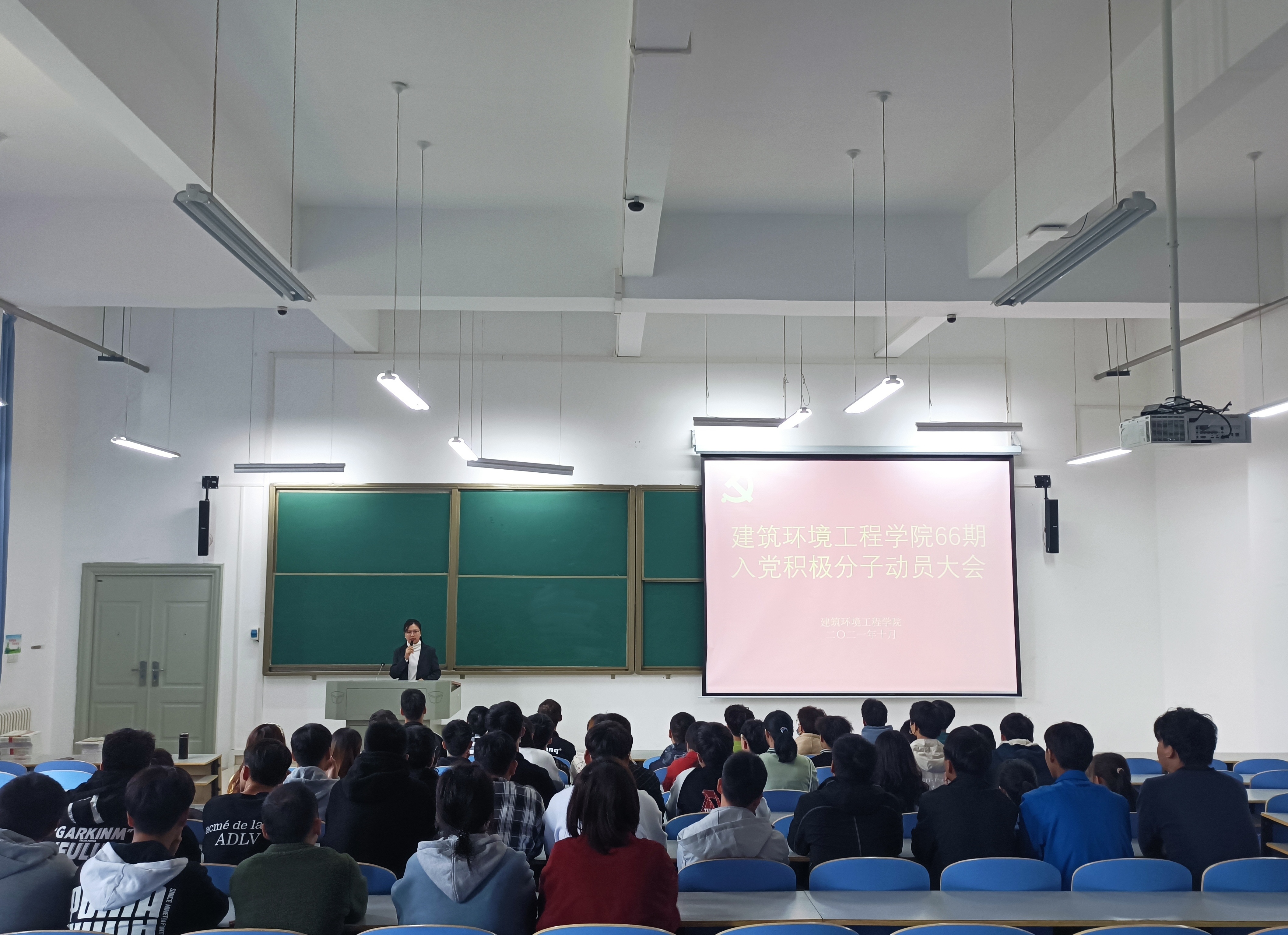 为进一步加深入党积极分子对党的组织原则和纪律认识,端正入党动机并提高其党性觉悟,近日,建筑环境工程学院在双创楼108室召开了入党积极分子党课动员大会。学院张怡老师以及第66期入党积极分子培训班全体学员参加了会议。