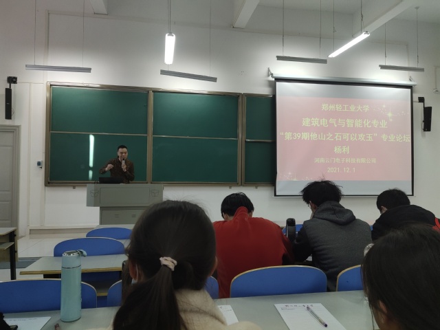 为彰显专业特色,激发学生学习兴趣,秉承“请进来,走出去”的育人理念,建筑电气与智能化专业于2021年12月1日下午和2日上午分别在双创楼108和三教楼102举办了第39期、第40期“他山之石可以攻玉”系列专业论坛,分别邀请了河南云门电子科技有限公司总经理杨利和我校建筑电气与智能化专业优秀校友中国电科22所天博电子信息科技有限公司国际事业部技术主管付强作报告,建筑电气与智能化专业2020级学生和部分专业教师参加。
