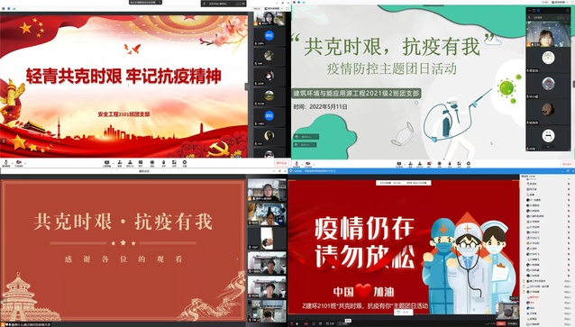 为深入贯彻落实习近平总书记关于疫情防控工作重要讲话中的指示精神,增强团员青年战胜疫情的信心和决心,5月8日至12日,建筑环境工程学院各班级团支部开展“共克时艰,抗疫有我”疫情防控主题团日活动。