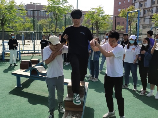 本次户外素质拓展活动旨在帮助同学们缓解日常生活中的心理压力,使同学们进一步熟悉并体验心理素质拓展基地的各类项目以便更好地推进心理工作的开展。活动初始,同学们在心理工作办公室成员及蒲公英使者的带领下,参观了素质拓展基地,随后相继体验了“击鼓颠球”、“不倒森林”及“盲目障碍”三个活动项目。活动当中,同学们充分发挥团队协作的能力,伴随着一声又一声的欢呼,颠球的次数逐渐增加,不倒森林的传递速度不断加快,盲目跨越障碍的速度也在队员的默契配合中不断提升。从刚开始的手忙脚乱到后来的轻车熟路,同学们默契配合所产生的积极结果逐渐体现,欢声笑语也逐渐溢满校园。