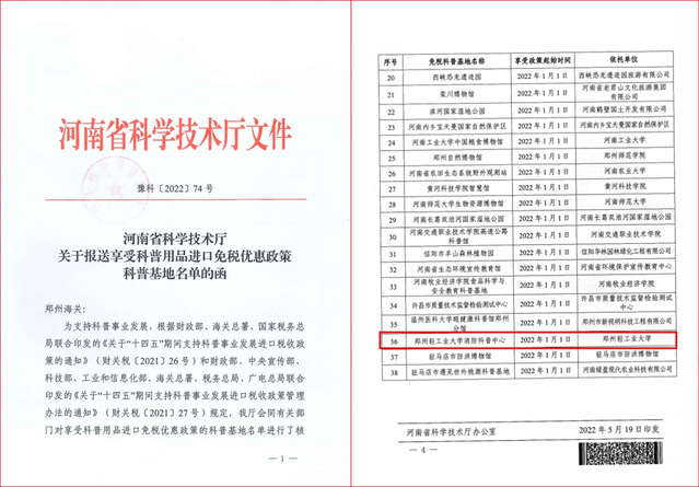 5月19日,河南省科学技术厅发布了《“十四五”期间享受科普用品进口免税优惠政策的河南省科普基地名单(第一批)》,郑州轻工业大学消防科普中心入选名单。