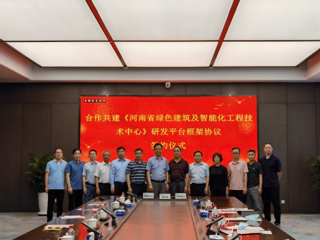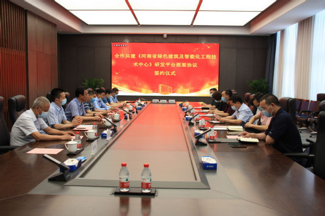 近日,合作共建《河南省绿色建筑及智能化工程技术中心》研发平台框架协议签约仪式在国机中兴工程咨询有限公司(以下简称“国机中兴”)成功举行。郑州轻工业大学建筑环境工程学院党政领导党委书记刘吉彬,院长杨存祥,副院长曹祥红,国机中兴党总支书记、执行董事李振文,党总支副书记、总经理王自振以及校企双方相关人员共同出席签约仪式并进行座谈交流。李振文主持仪式。