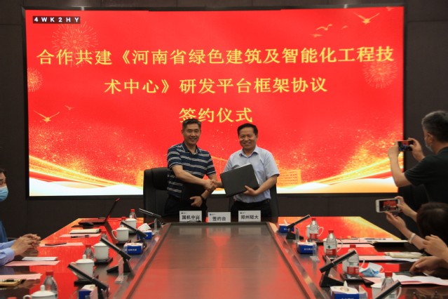 随后,双方就进一步加强绿色建筑及智能化等领域务实合作进行了深入交流并达成广泛共识,建筑环境工程学院院长杨存祥与国机中兴党总支副书记、总经理王自振分别代表双方进行了签约。
