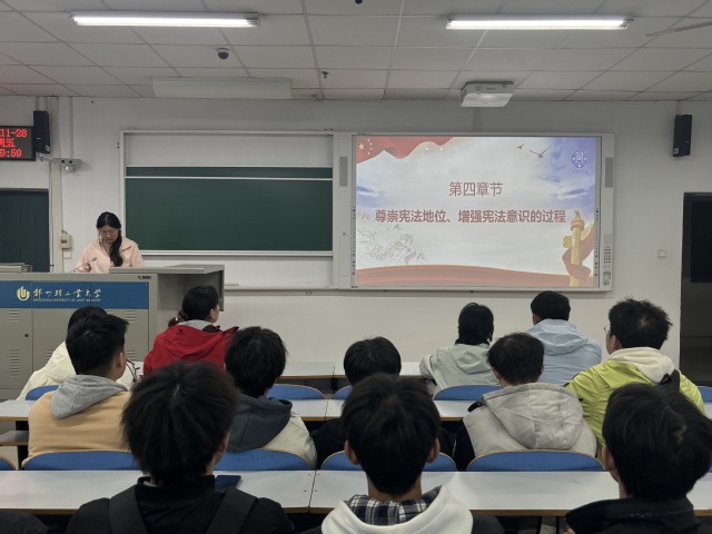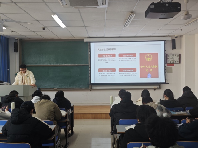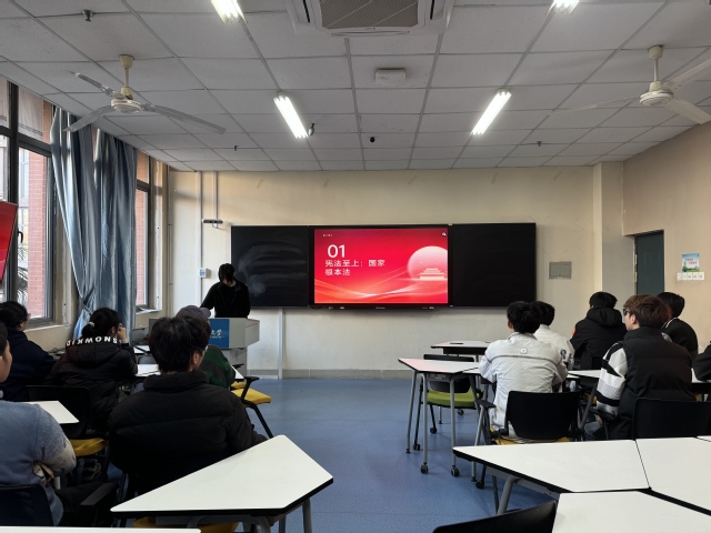 活动中,各团支部围绕主题开展了系统深入的学习交流。团支书以“宪法发展历程”“公民权利与义务”“制度优势与法治实践”等内容为重点,通过精心准备的PPT与影像资料,梳理我国宪法的制定与完善脉络,阐释宪法作为国家根本大法的权威地位与时代价值,并结合中国特色社会主义制度的发展成就与具体案例,引导同学们深刻理解“依宪治国、依宪执政”的深刻内涵与显著优势。在研讨交流环节,同学们结合宪法实施、社会治理与学生生活实际,围绕典型法治案例展开热烈讨论,进一步明晰宪法与国家发展、社会进步及个人成长的紧密联系。大家一致表示,要将对宪法的尊崇、对制度的自信转化为日常学习、生活中的自觉行动,从遵守校纪校规、恪守学术诚信、理性参与公共事务做起,积极学习法律知识、提升法治素养,努力成为社会主义法治的忠实崇尚者、自觉遵守者、坚定捍卫者。