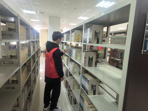 志愿者们身着统一服装走进逸夫图书馆,向图书馆管理员认真学习了图书分类标准、整理方法及操作规范,在明确工作要求后,迅速分组到位,进入工作状态。活动现场,志愿者们干劲十足、分工明确,配合默契。有的弯腰捡拾散落的书籍,细心将其按类别、序号准确归位;有的逐排核对图书信息,耐心纠正错位、放反的书籍,让每一本“迷路”的图书重新“归队”;有的轻轻擦拭书架浮尘,细致清理阅览区杂物,用双手为师生营造整洁有序的阅读环境。整个服务过程中,志愿者们始终保持轻手轻脚、轻拿轻放,时刻注意不影响馆内阅读学习的师生,全力维护图书馆安静、温馨的阅览氛围。经过志愿者们的辛勤努力,逸夫图书馆的阅览区、书架区焕然一新,书籍摆放整齐规范,环境更加干净整洁。